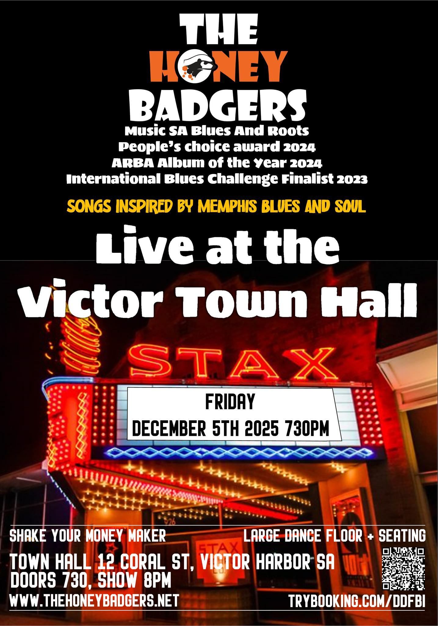 The Honey Badgers - Songs Inspired by Memphis Blues and Soul - Victor Harbor Town Hall, 7:30PM