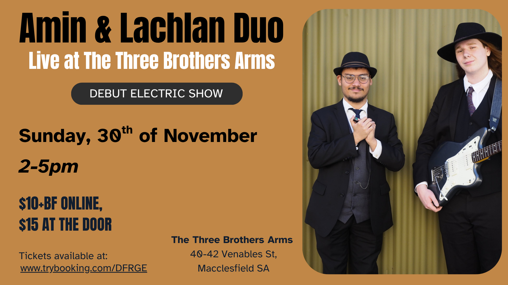 Amin and Lachlan (Electric Show) - Three Brothers Arms, 2-5PM Get Tickets ($10 Online)