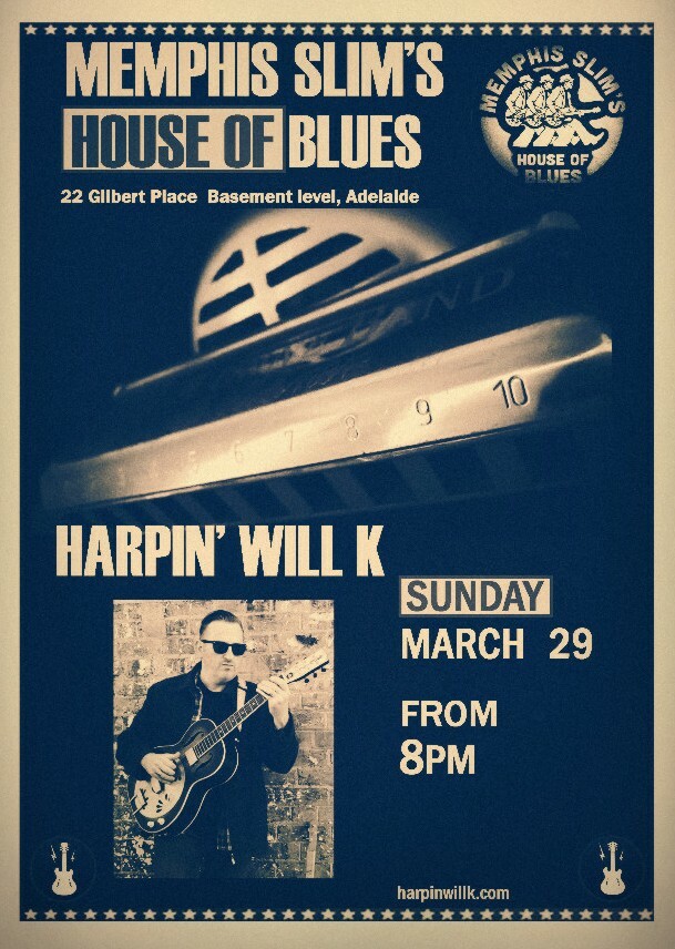 Harpin' Will K- Memphis Slim's, 8PM